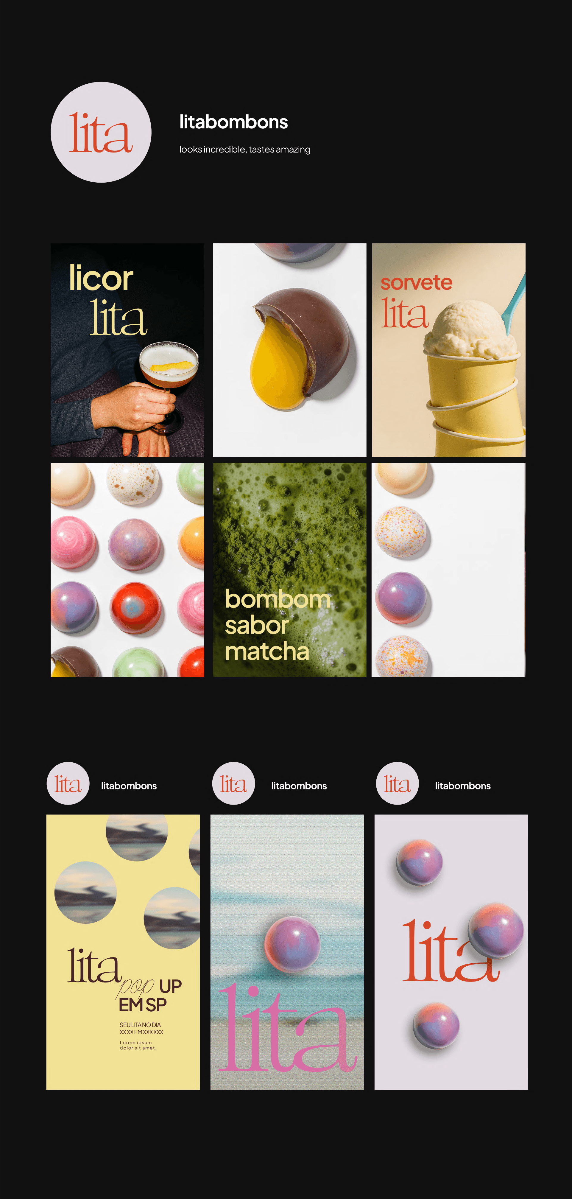 A Lita é uma loja de bombons artesanais pintados à mão, no projeto nos buscamos traduzir a sofisticação do produto mantendo ele divertido e acessível.